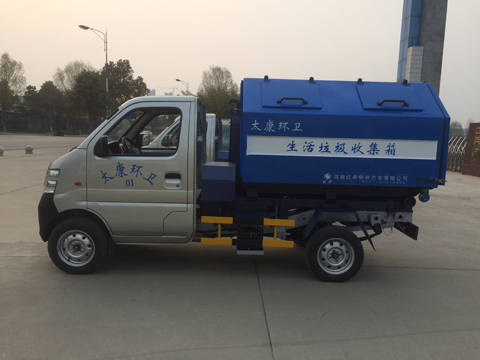 該車型是在二類底盤的基礎上加裝拉臂結構、舉升翻轉機構、鎖箱機構、副車架和后支撐裝置等組成。主要用于垃圾中轉站、垃圾處理場、居民生活垃圾收集點、企業廠區等場所的垃圾運輸。適用于大、中、小城鎮環衛、市政部門、物業公司使用。